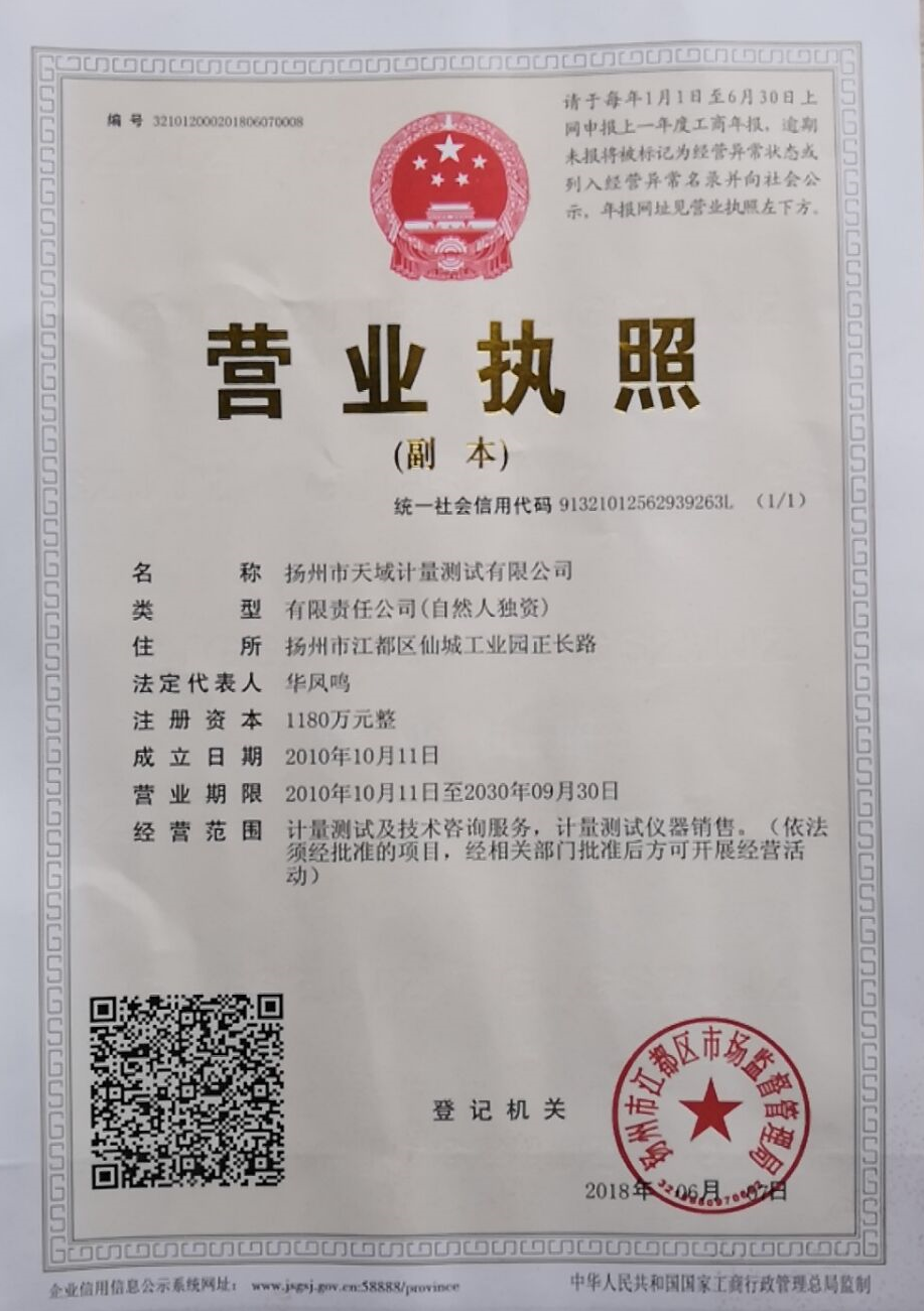 揚州市天域計量測試有限公司,是于2010年10月成立的一家集計量器具檢測,計量技術(shù)咨詢和計量器具銷售為一體的專業(yè)化技術(shù)機(jī)構(gòu)的專業(yè)機(jī)構(gòu)。